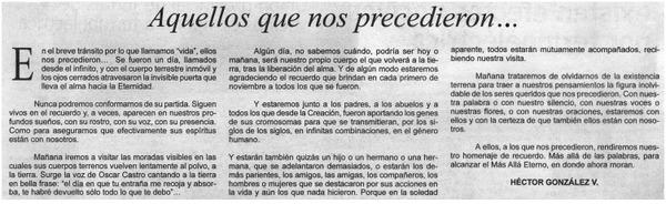Aquellos que nos precedieron -- [artículo] Héctor González V.