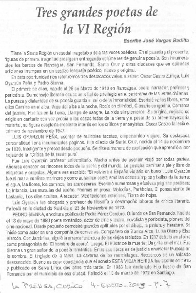 Tres grandes poetas de la VI región [artículo] José Vargas Badilla.