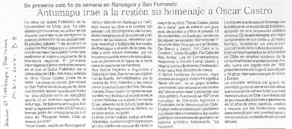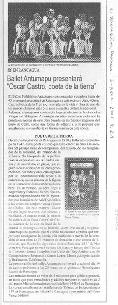 Ballet Antumapu presentará "Óscar Castro, poeta de la tierra" [artículo]