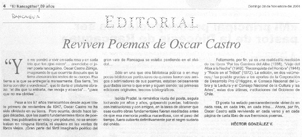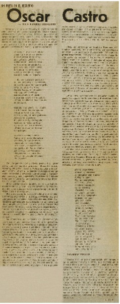 Reviven poemas de Oscar Castro [artículo] Héctor González V.