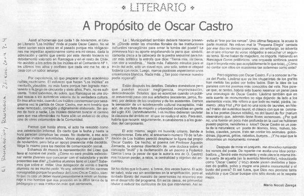 A propósito de Oscar Castro [artículo] Mario Noceti Zerega