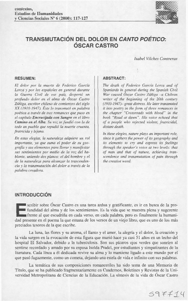 Transmutación del dolor en canto poético, Oscar Castro [artículo] Isabel Vilches Contreras