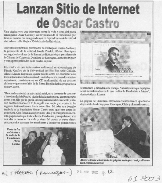 Sitio web de Oscar Castro está siendo traducido al inglés [artículo] Patricio Rodríguez