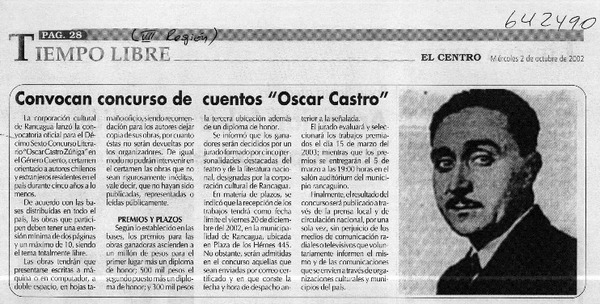 Convocan concurso de cuentos "Oscar Castro" [artículo]
