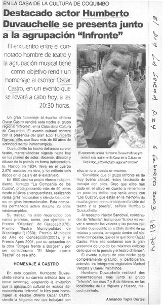 Destacado actor Humberto Duvauchelle se presenta junto a la agrupación "Infronte". [artículo]