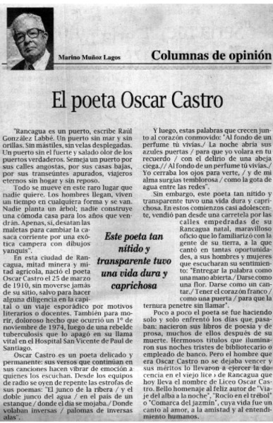 30° aniversario de su muerte: Rancagua recordará a poeta Oscar Castro. [artículo]