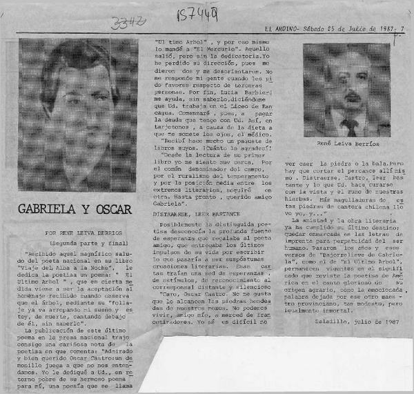Título "Oscar Castro, epistolario íntimo" [artículo] René Leiva