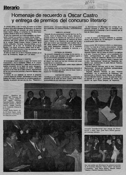 Región de O'Higgins rindió homenaje al escritor y poeta rancagüino Óscar Castro [artículo] Álvaro Rivera E.