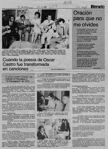 Cuando la poesía de Oscar Castro fue transformada en canciones [artículo] Héctor González V.