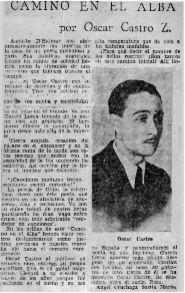Camino en el alba por Oscar Castro Z. [artículo] Angel Cruchaga Santa María.