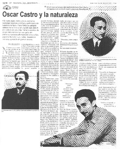 Con un evento poético se celebrará el próximo natalicio de Óscar Castro. [artículo]
