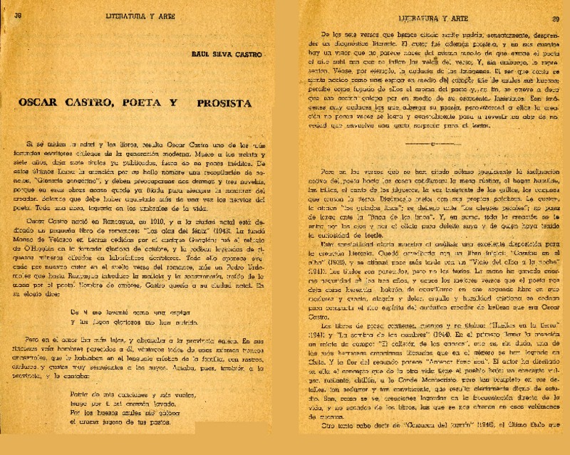 Raúl González Labbé: Biografía de Oscar Castro [artículo] Edmundo Concha.