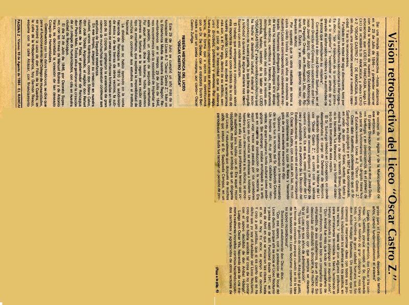 Visión retrospectiva del Liceo "Oscar Castro Z". [artículo]