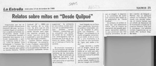 Relatos sobre mitos en "Desde Quilpué" [artículo] Claudio Solar.