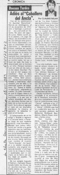 Adiós al "Caballero del Ancla" [artículo] Claudio Solar.