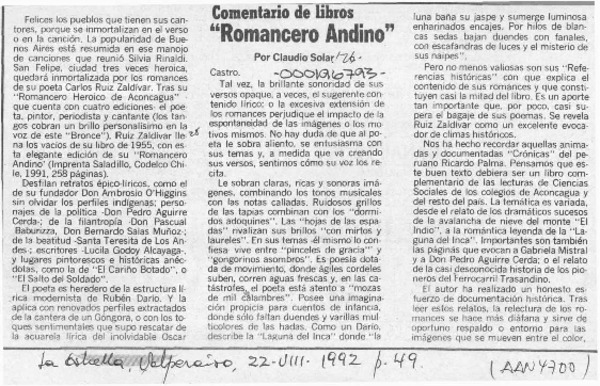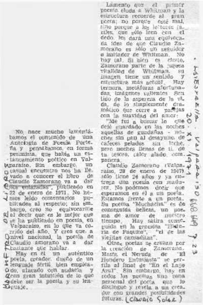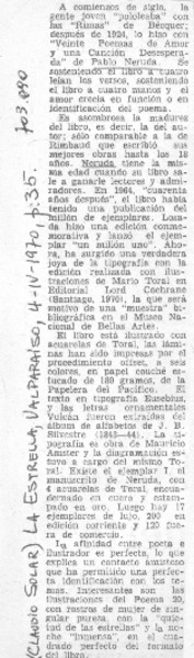 Veinte poemas de amor y una canción desesperada [artículo] Claudio Solar.