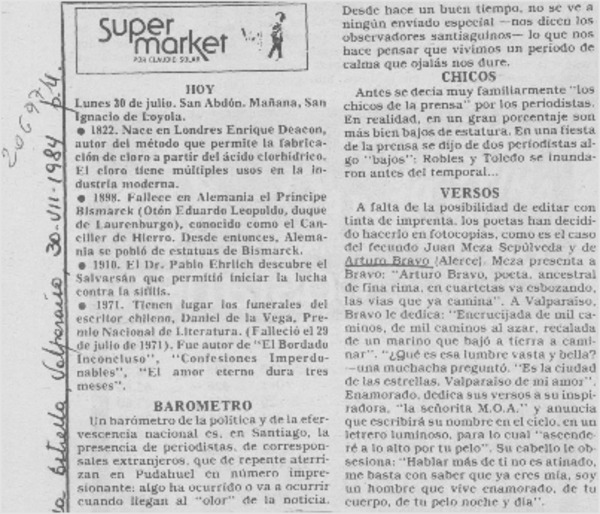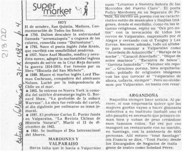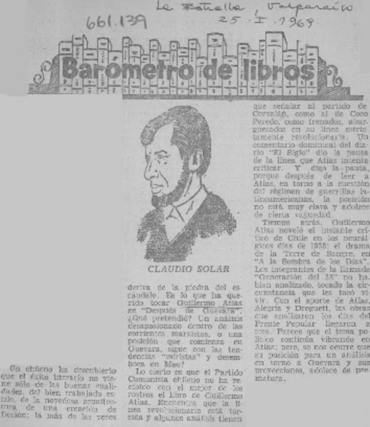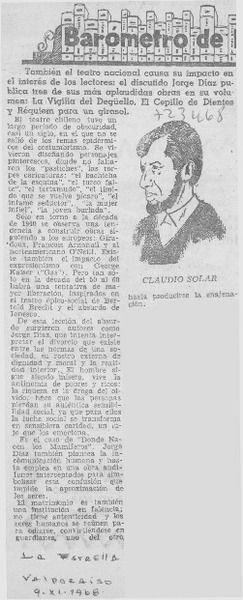 Viejo rostro de Valparaíso evoca Joaquín Edwards Bello [artículo] Claudio Solar.