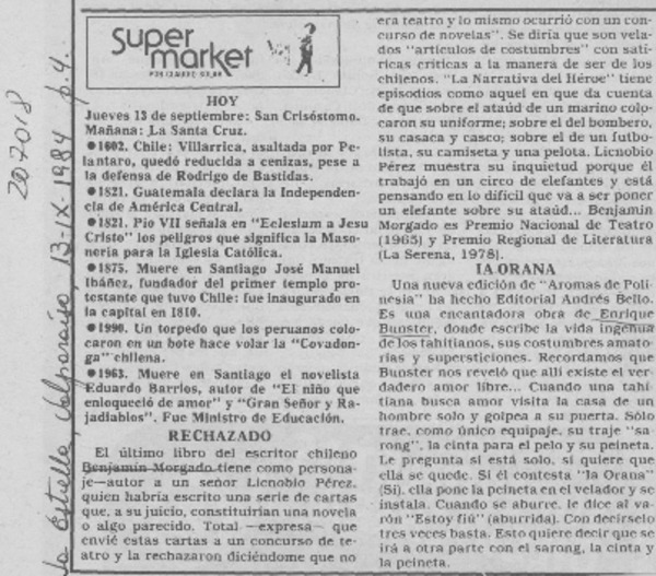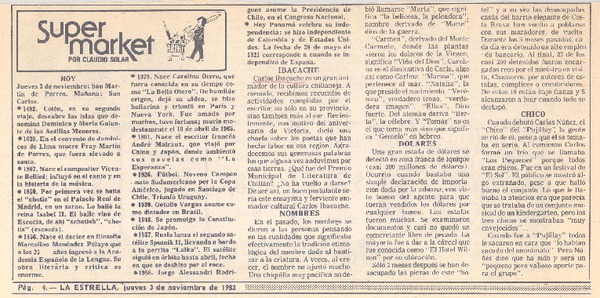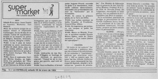 Autoras chilenas - Autores chilenos - Pinochet Ugarte, Augusto - Varas, Florencia - Dahse, Fernando - Mapa de la extrema riqueza - Orrego Vicuña, Claudio - Día decisivo - Caso Letelier - Alvarado León, Carlos - Superventas - Ruiz S., Carlos - Puerto en la botella