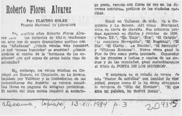 Roberto Flores Alvarez [artículo] Claudio Solar.