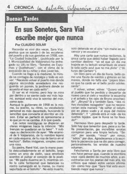 Sara Vial tiene un violín [artículo] Claudio Solar.