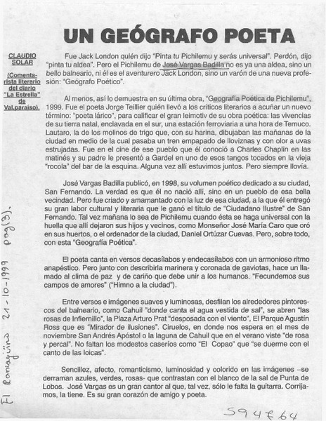 Autores chilenos - Vargas Badilla, José - Geografía poética de Pichilemu