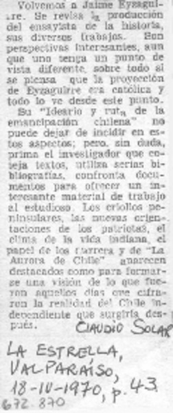 Agil y documentada visión de Valparaíso que se fue [artículo] Claudio Solar.