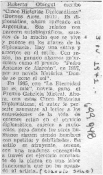 Autores chilenos - Otaegui, Roberto - Cinco historias diplomáticas
