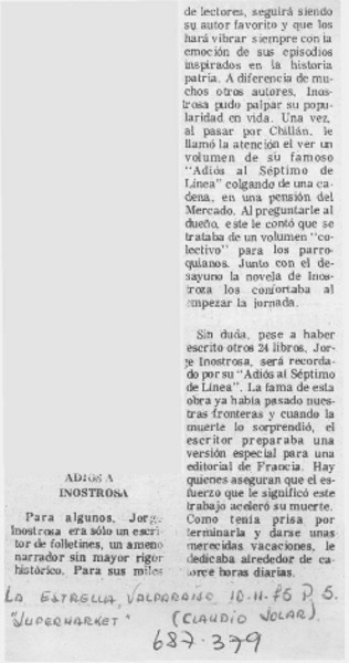 Adiós a Inostrosa [artículo] Claudio Solar.