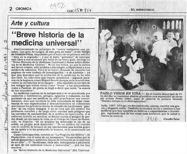 Apasionante historia de nuestra medicina entrega libro escrito por doctor Sergio de Tezanos Pinto [artículo] C. Solar.
