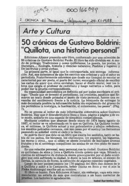 50 crónicas de Gustavo Boldrini, "Quillota, una historia personal" [artículo] Isabel Barrientos Díaz.
