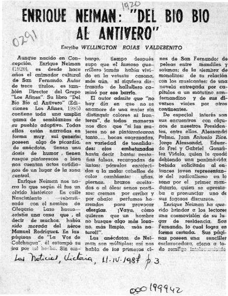 Enrique Neiman, "Del Bío-Bío al Antivero" [artículo] Wellington Rojas Valdebenito.