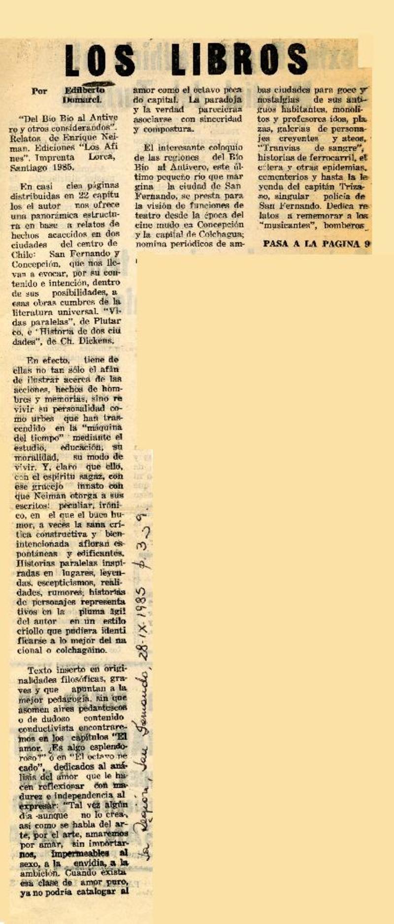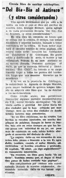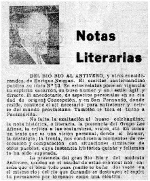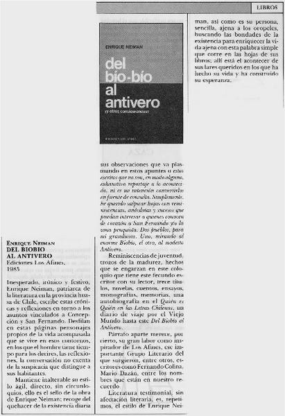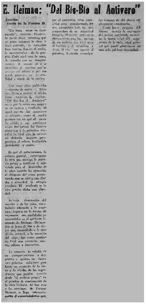 E. Neiman, "Del Bío-Bío al antivero" [artículo] Darío de la Fuente D.
