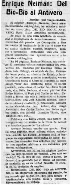 Enrique Neiman, "Del Bío-Bío al Antivero" [artículo] José Arraño Acevedo.
