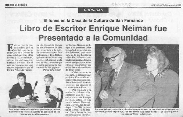 Libro de escritor Enrique Neiman fue presentado a la comunidad [artículo]