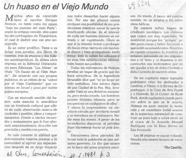 Un huaso en el viejo mundo [artículo] Tito Castillo.