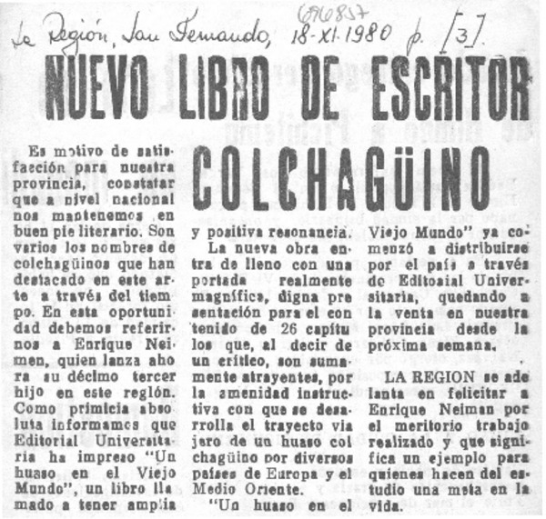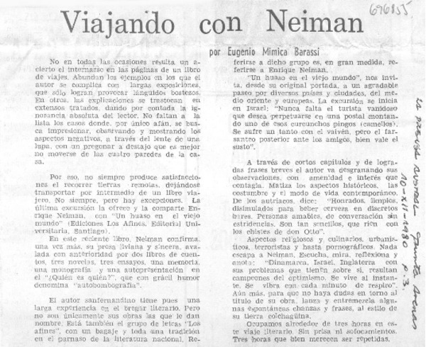 Un viaje feliz de Enrique Neiman [artículo] Alfonso Larrahona Kästen.