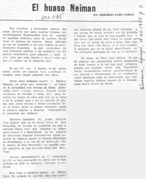 El huaso Neiman [artículo] Medardo Cano Godoy.