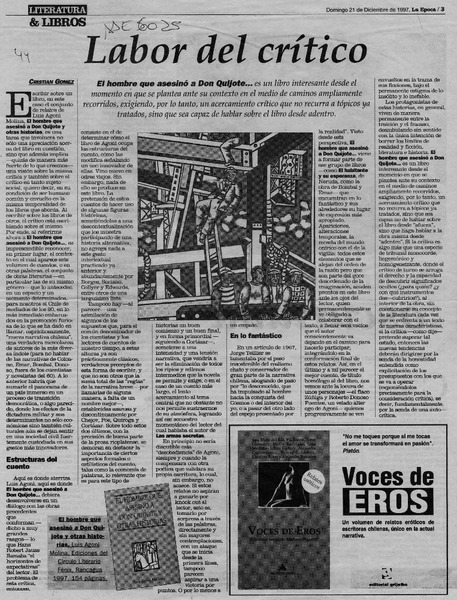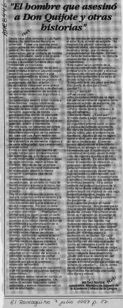 El hombre que asesinó a Don Quijote y otras historias [artículo] Jaime Herrera D'Arcangeli.