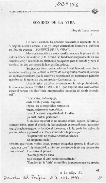 Sonidos de la vida [artículo] Modesto Parera.