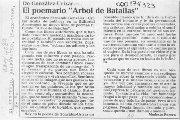 El poemario "Arbol de batallas" [artículo] Modesto Parera.