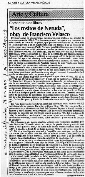 "Los rostros de Neruda", obra de Francisco Velasco [artículo] Modesto Parera.