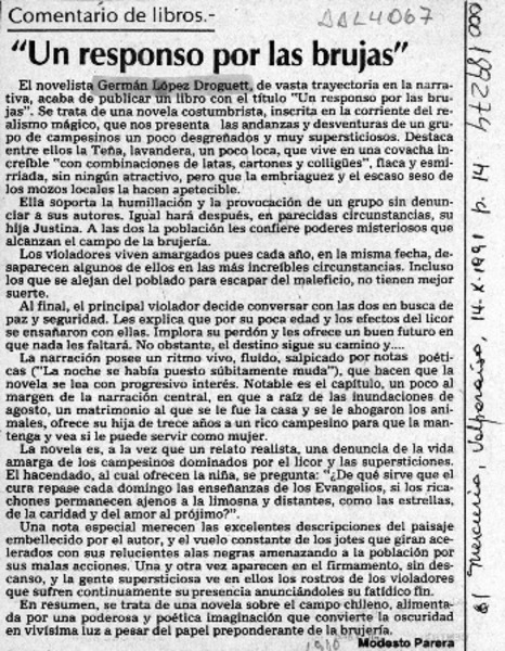 "Un responso por las brujas" [artículo] Modesto Parera.