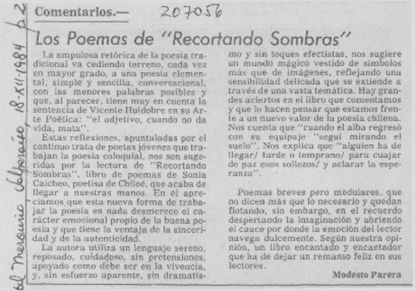 Nuevas expresiones de vitalidad poética [artículo] Modesto Parera.