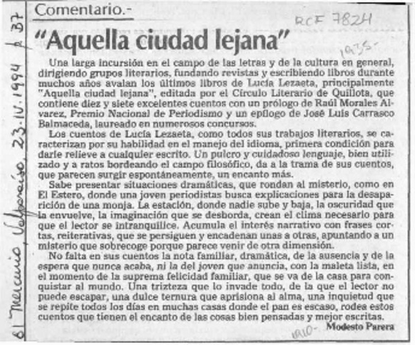 "Aquella ciudad lejana" [artículo] Modesto Parera.