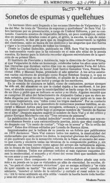 Sonetos de espumas y queltehues [artículo] Modesto Parera.
