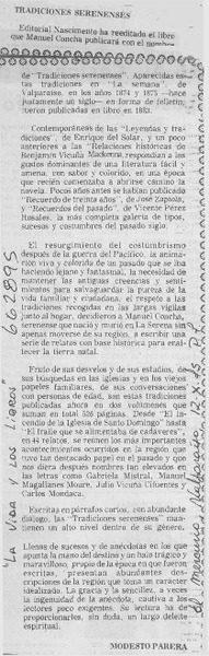 Tradiciones serenenses. [artículo] Modesto Parera.