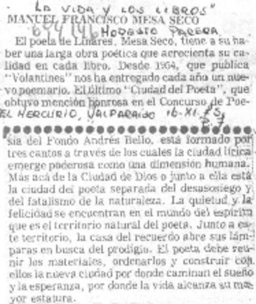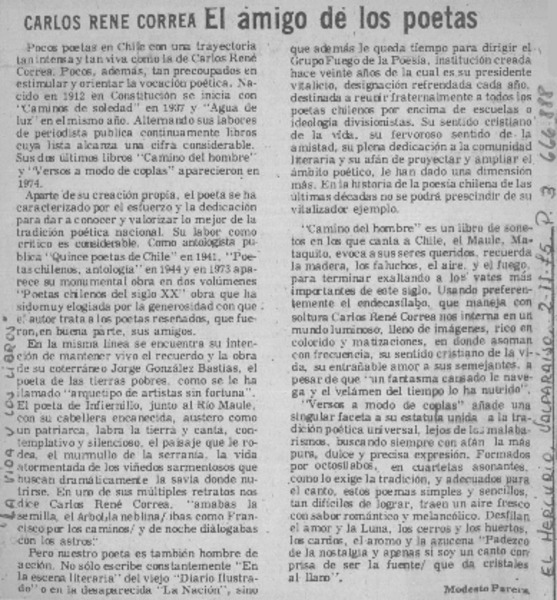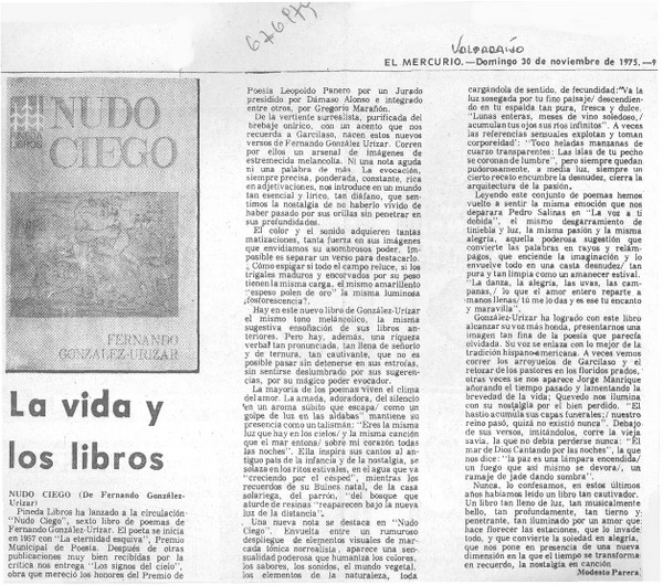 "La vida y los libros". [artículo] Modesto Parera.