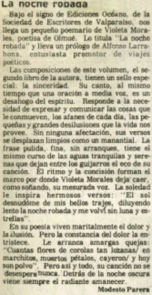 La noche robada [artículo] Modesto Parera.