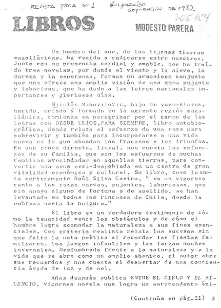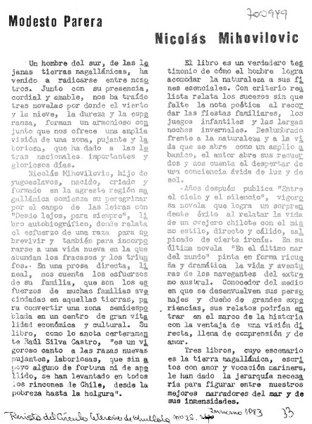 Nicolás Mihovilovic [artículo] Modesto Parera.