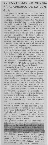 El poeta Javier Vergara, académico de la lengua [artículo] Modesto Parera.